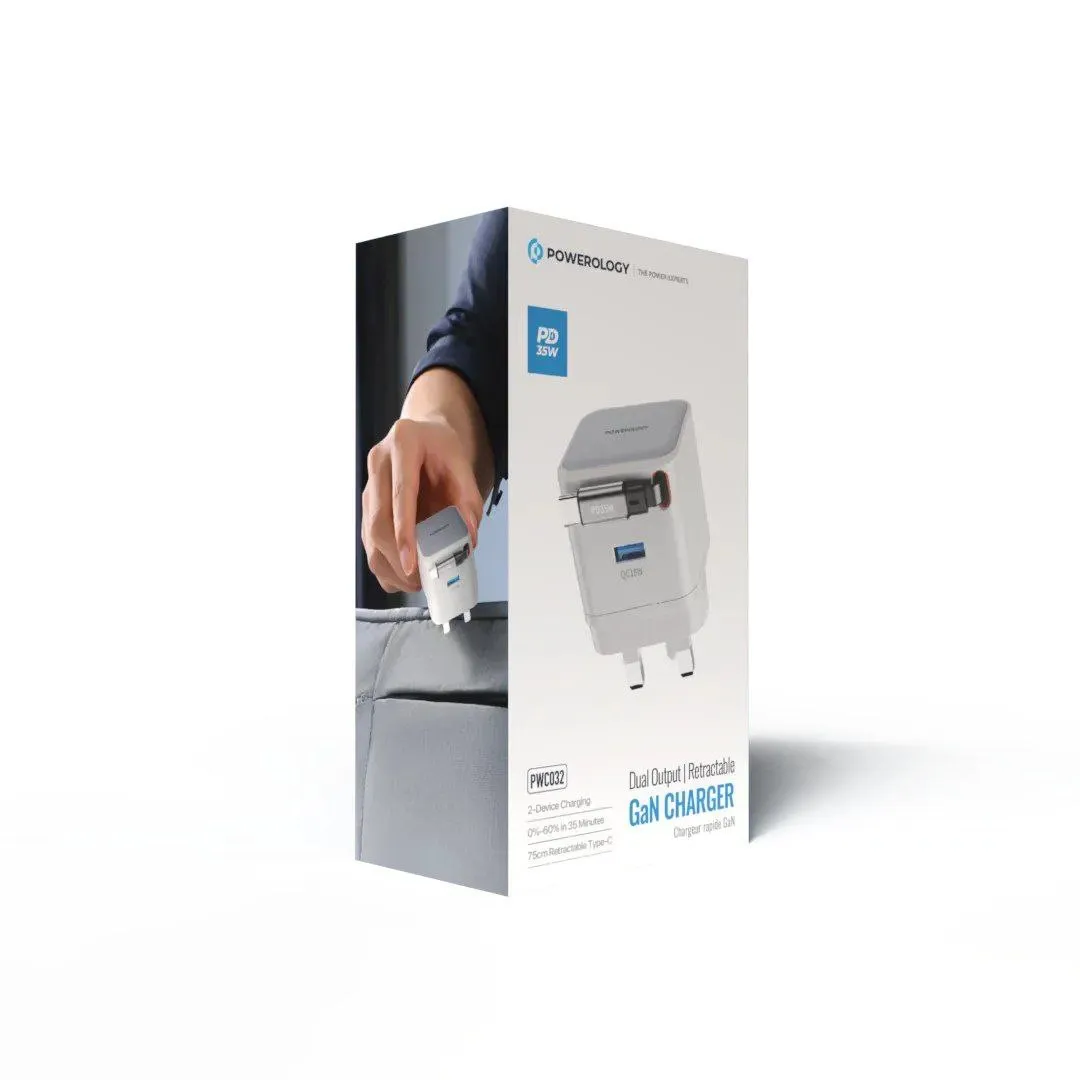 شارژر Powerology PWCUQC032؛ شارژ سریع ۳۵ وات با خروجی تکی، جمعوجور و ایمن
