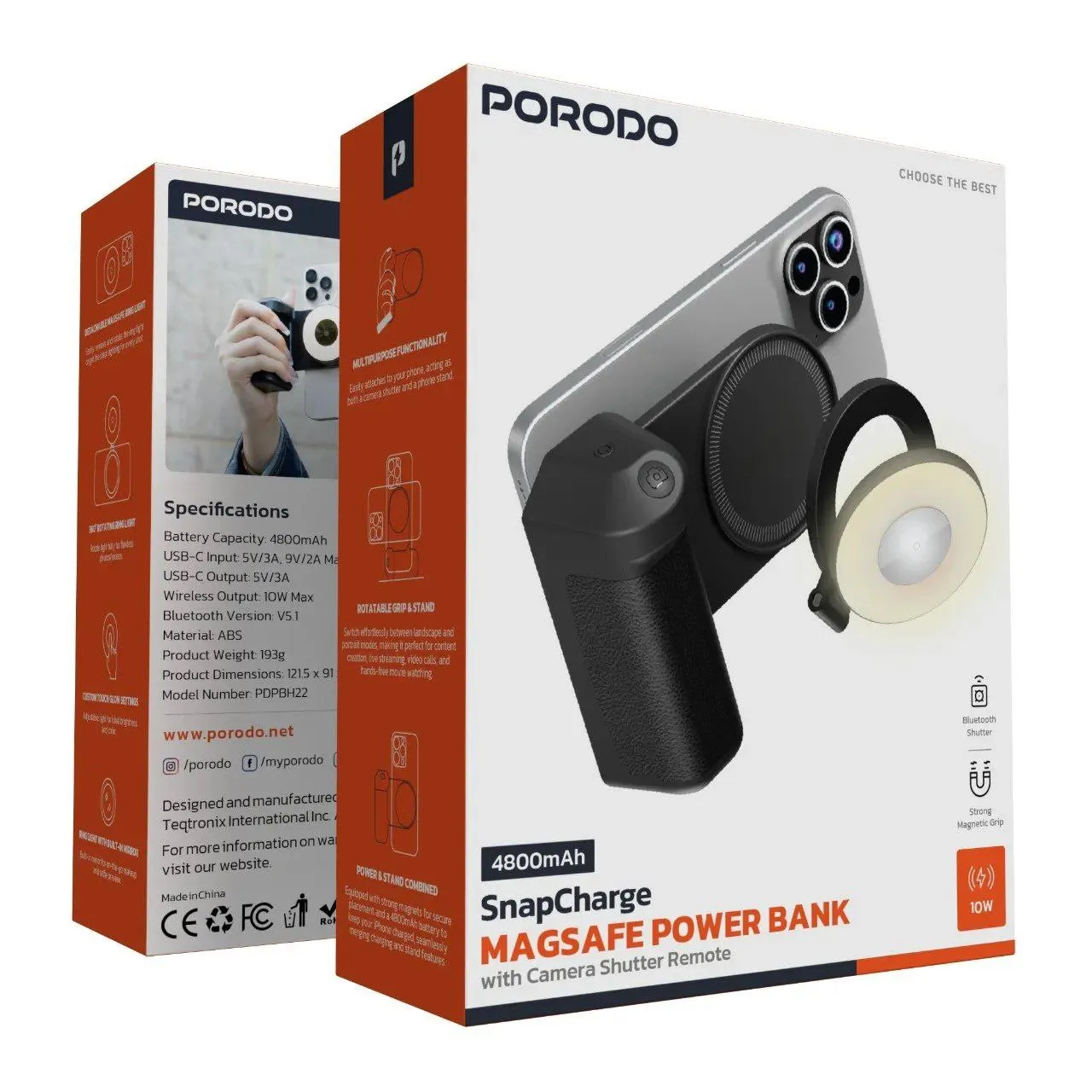 پاوربانک مگسیف Porodo PDPBH22BK؛ شارژ بیسیم سریع، ایمن و قابل حمل