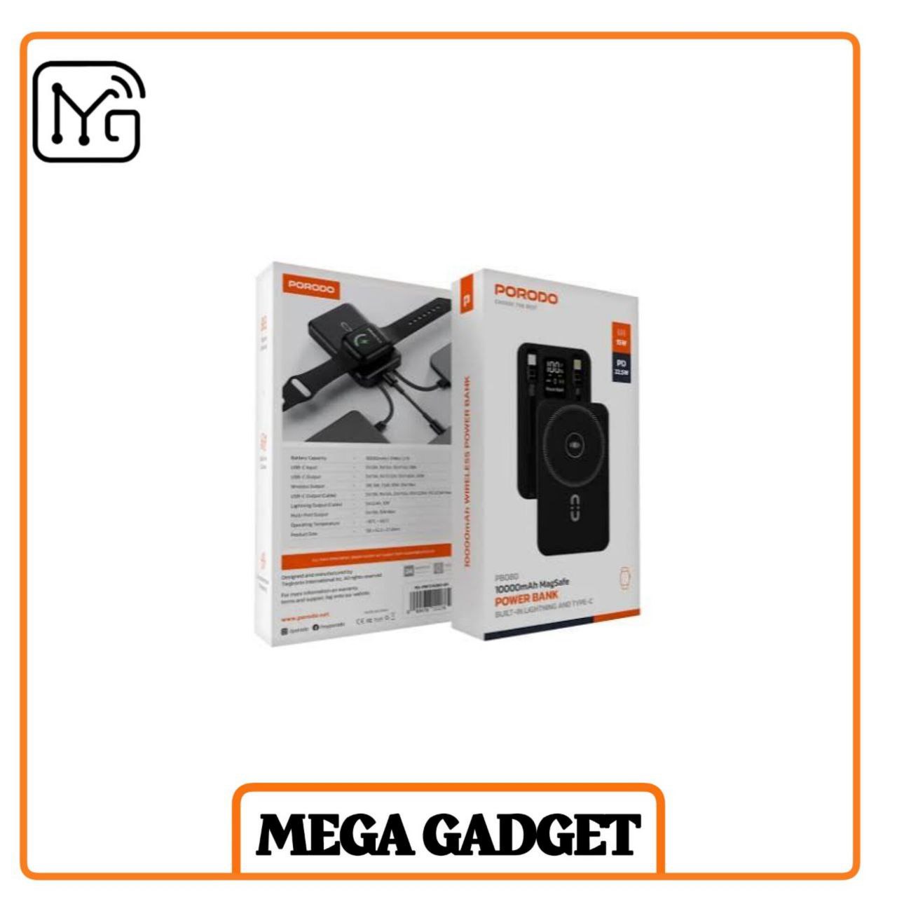 پاوربانک مگ سیف کابل متصل 22.5 وات پرودو Porodo 10000mAh Magsafe Power Bank Built-In Lightning And Type-C PD-PBFCH080
