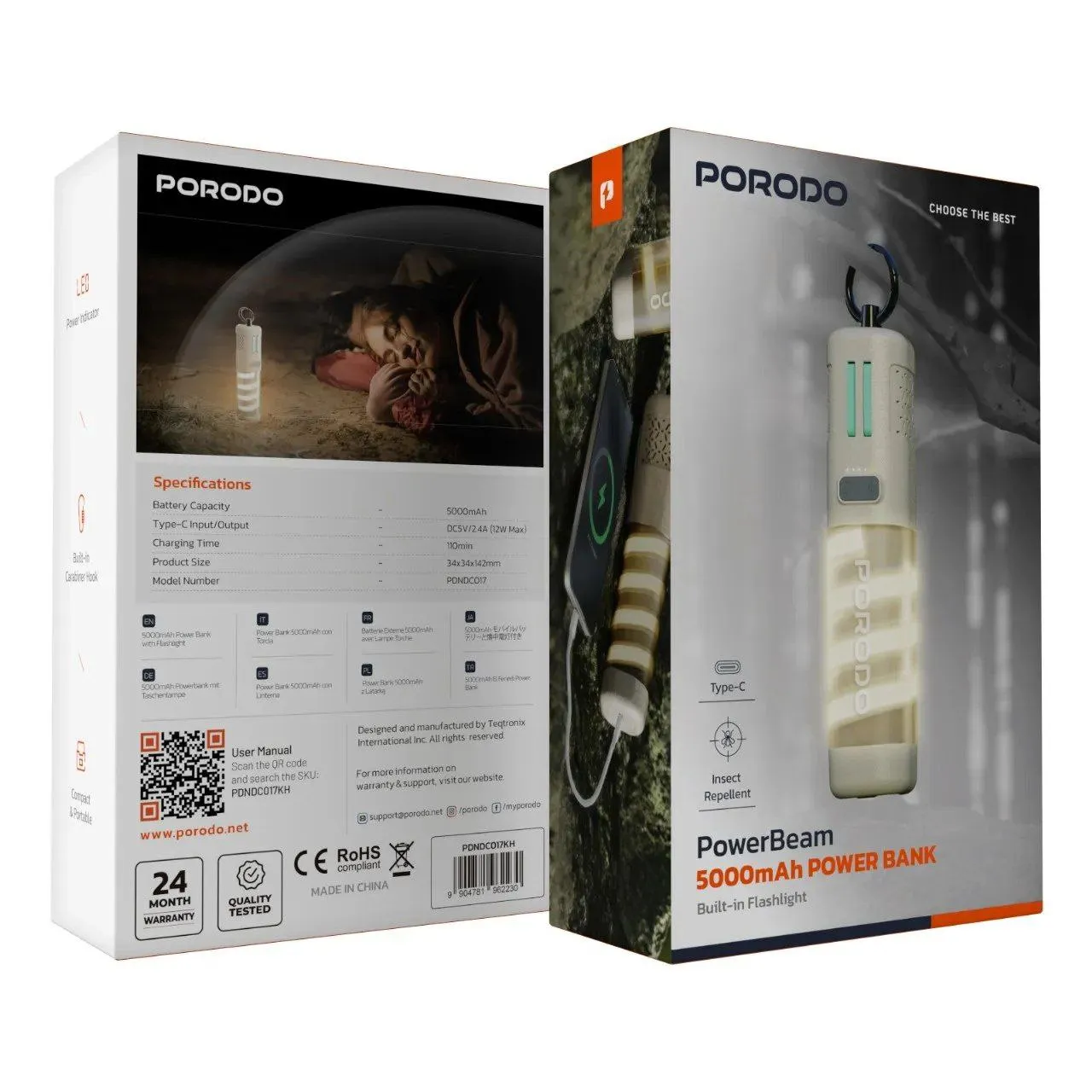 پاوربانک 5000 پرودو همراه با چراغ قوه و دفع حشرات Porodo PowerBeam 5000mAh Power Bank PDNDC017