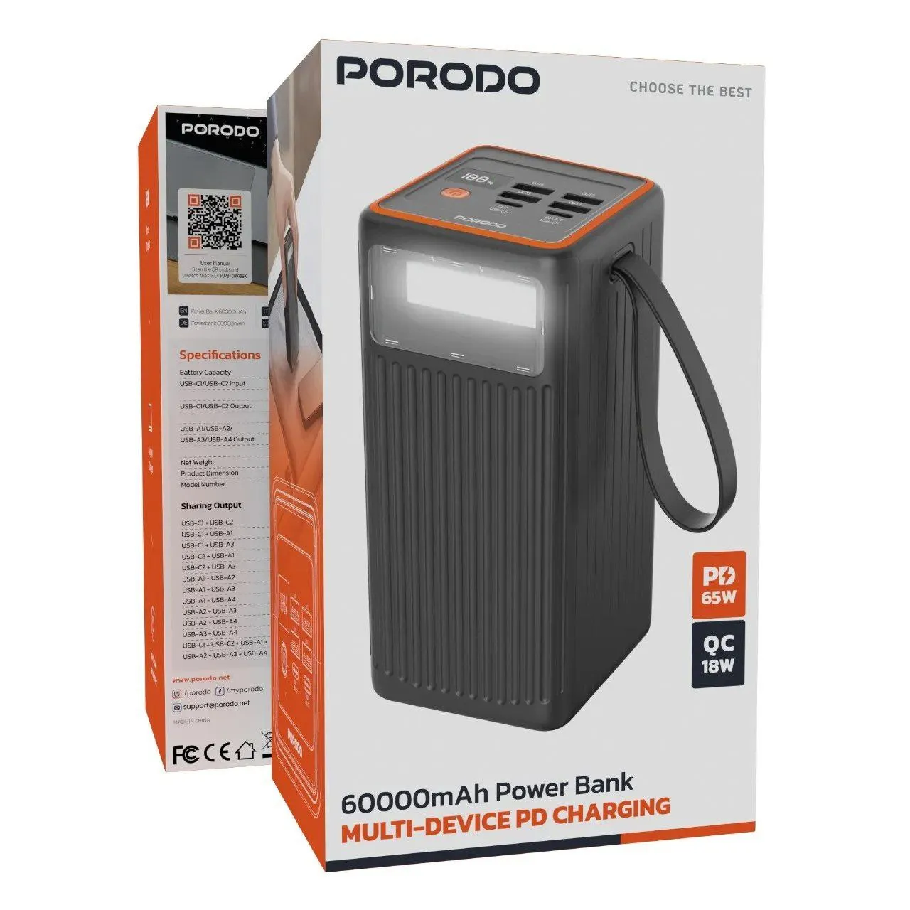 پاوربانک 60000 میلی آمپر 65 وات پرودو Porodo 60000mAh Power Bank Multi-Device PD Charging PB079