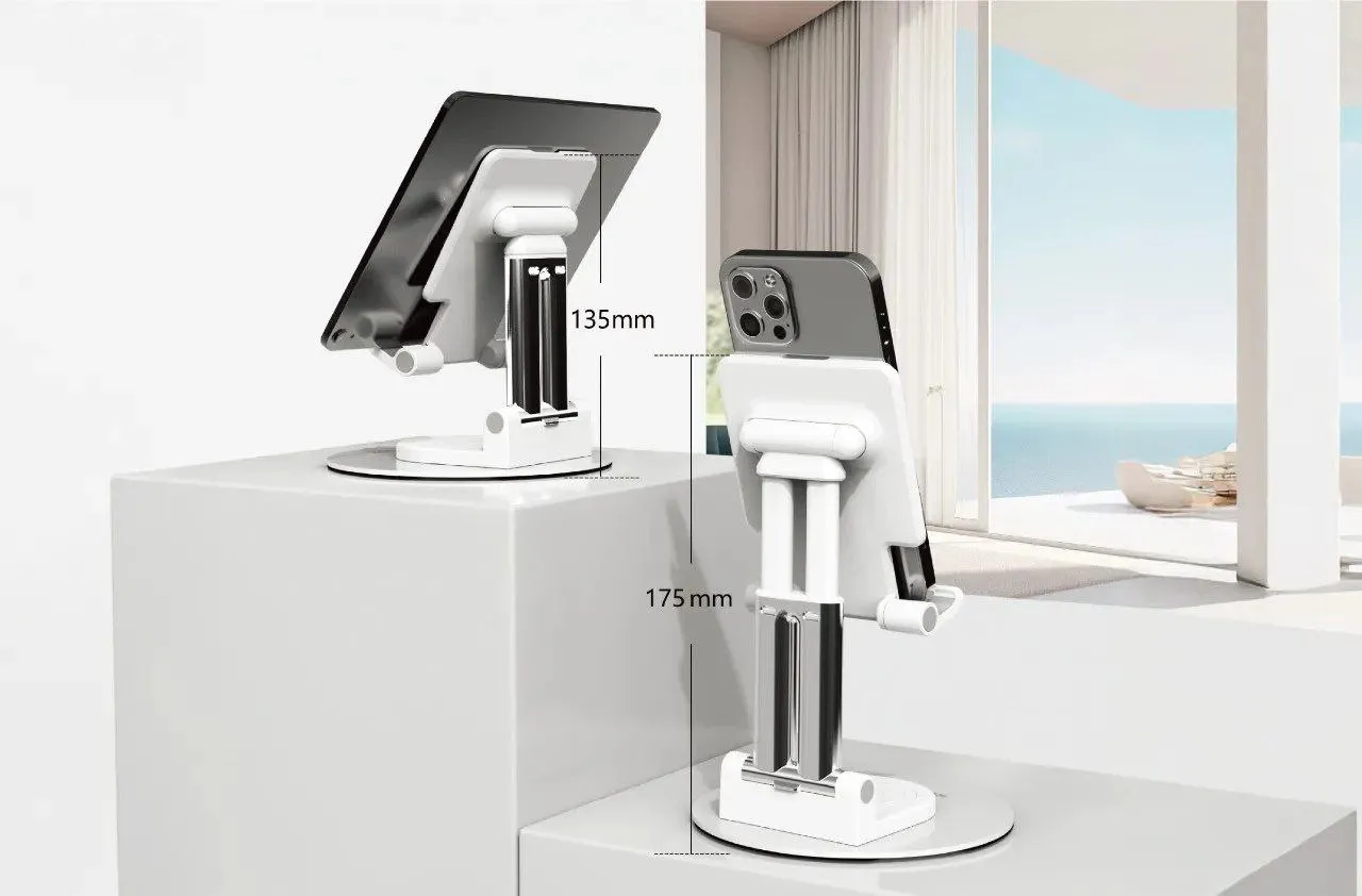 طراحی ارگونومیک این استند به کاهش فشار روی گردن و دست کمک کرده و تجربهای راحتتر هنگام تماسهای تصویری، کلاسهای آنلاین، مطالعه، تماشای فیلم و تولید محتوا ایجاد میکند. پایه ضد لغزش و بدنه مقاوم آن، ثبات کامل دستگاه را روی میز تضمین میکند.