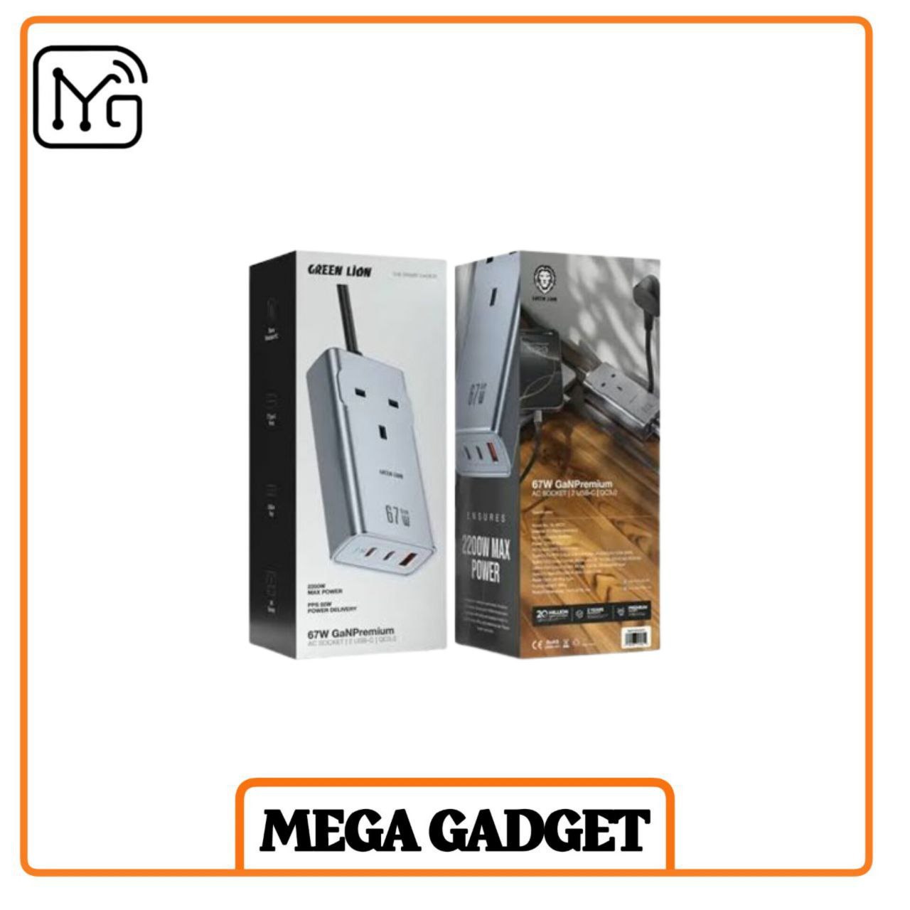 چندراهی برق و شارژر 67 وات گرین لاین Green Lion 67W GaN Premium AC Socket